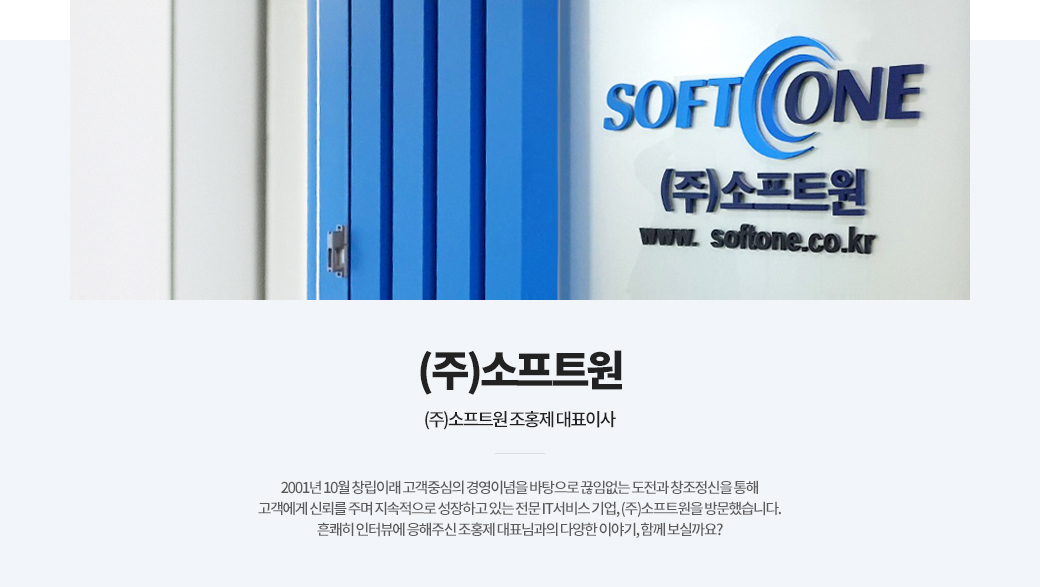 만나뵙게 되어 반갑습니다. 저는 소프트원을 이끌고 있는 조홍제라고 합니다.